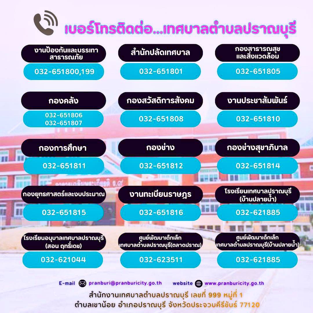 E-mail เทศบาลตำบลปราณบุรี : pranburi@pranburicity.go.th