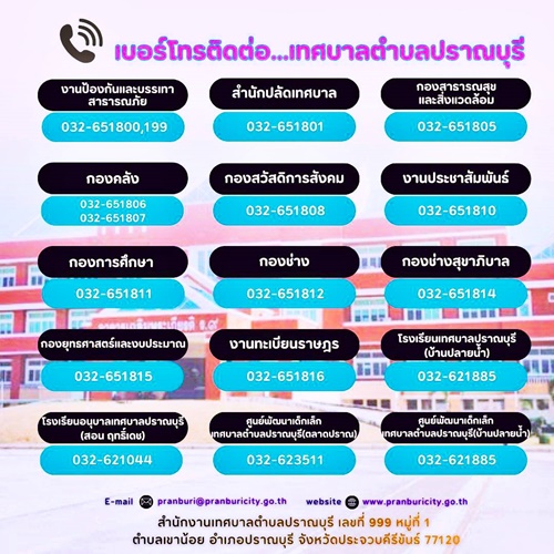 ข้อมูลการติดต่อ เทศบาลตำบลปราณบุรี